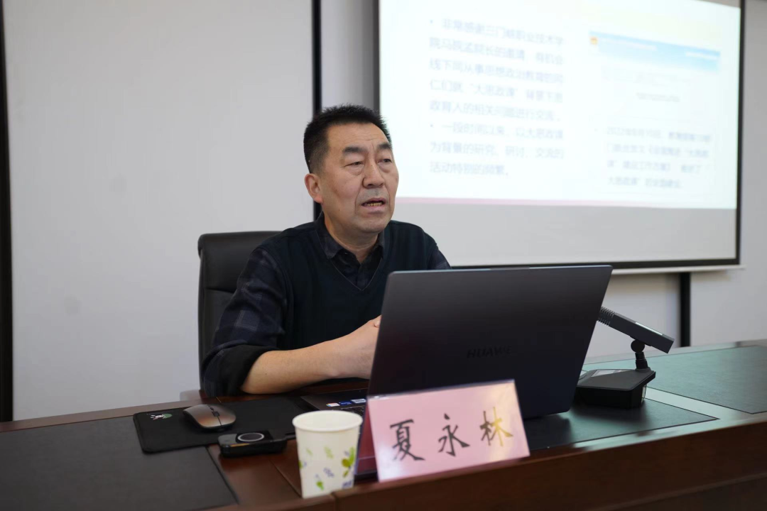 西安电子科技大学yl7703永利夏永林教授以《以“大思政课”理念推进思政育人的思考》为题,从“大思政课”的提出、“大思政课”多维内涵及思政育人理念、“大思政课”背景下思政协同育人思考三个方面进行了详实而生动的讲解。报告主题明、视角新,具有很强的针对性和实操性,以“大思政课”的提出背景为切入,通过“育人理念”“育人体系”“育人过程”“育人主体”“育人格局”五个维度全面诠释解读了“大思政课”的内涵和育人机制,紧扣推进“大思政课”需破解的难题,提出以“大思政课”理念与思维,统筹协调思政育人的多主体、多平台、多资源、多方式、多手段,善用社会“大课堂”、搭建“大资源”平台、构建“大团队”体系、建设工作“大格局”,切实推动高职院校思政育人提质增效。