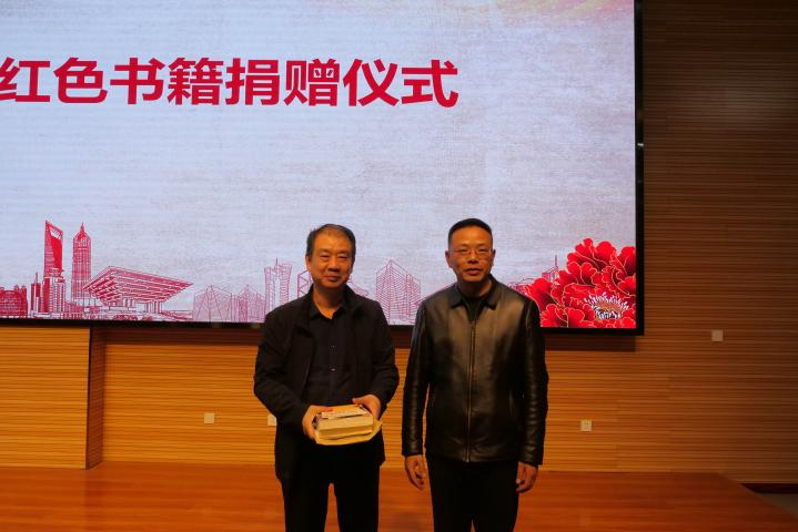 宣讲结束后,进行红色书籍捐赠仪式。兵站旧址工作人员给公司师生赠送了《论共产党员的修养》等红色书籍。