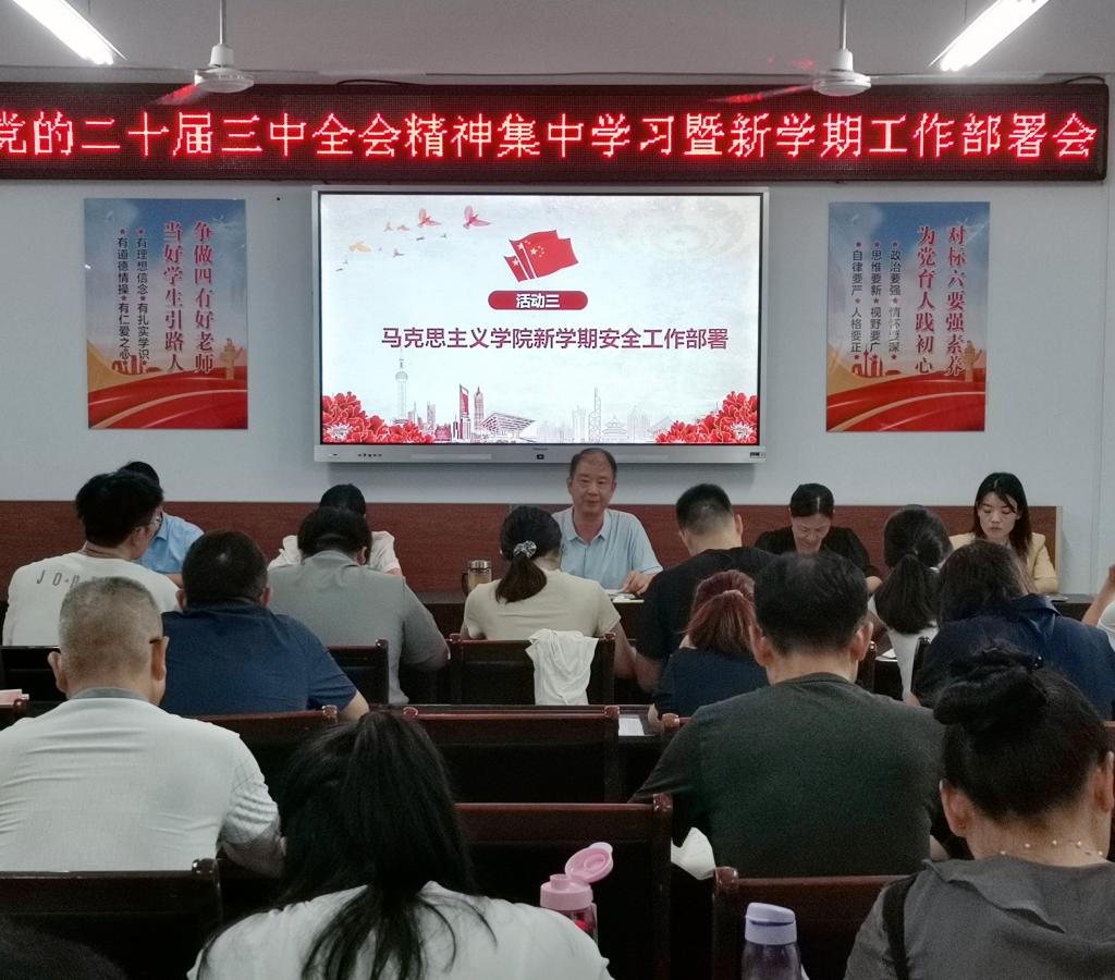 会议对暑期各项工作开展情况进行了总结,并对新学年的工作做了全面部署,提出了新要求。孟昭阳经理在讲话中从十个方面对新学期工作提出了明确要求:一是坚持党建引领,落实三级联创方案,进一步打造党建品牌,全面提升党建水平;二是提高政治站位,周密安排好党的二十届三中全会精神的学习宣传工作;三是扎实落实措施,组织开展思政课课堂教学提升行动,规范集体备课加大听课指导,增强数字赋能不断提升课堂教学效果;四是推进开放交流,积极开展对外交流学习,落实结对提升各项措施;五是认真对标对表,全力以赴完善条件、查缺补漏,做好迎接全省马院达标验收准备工作;六是创新工作思路,积极开展有组织的科研,实现新的突破,推进教师科研能力提升;七是做好教学检查,精心组织集体备课,确保“三到位”,做好新学期开学各项准备工作;八是强化宣传意识,完善宣传平台建设、运行机制,营造浓厚建设氛围;九是巩固教育成果,形成长效机制,不断转变工作作风,以良好的精神状态投入新学期工作;十是涵养师德师风,大力弘扬教育家精神,以不断推进思政课改革创新的实际效果展示新时代思政课教师的良好风貌。