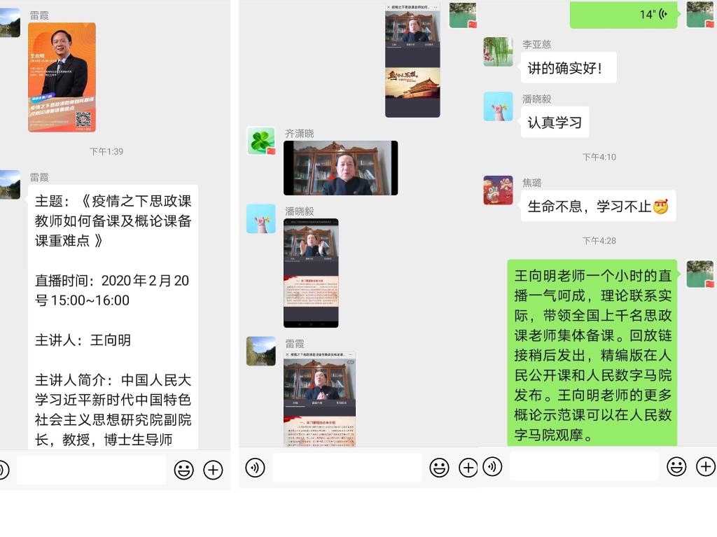 王向明教授此次的讲授对于yl7703永利教师学习领会和贯彻落实疫情之下思政课教师如何备课及概论课备课重难点指明了方向。通过本次集体课研会和对人民数字马院平台的关注和学习,为提高思政教师的信息化水平,提供线上集体备课直播奠定了基础。