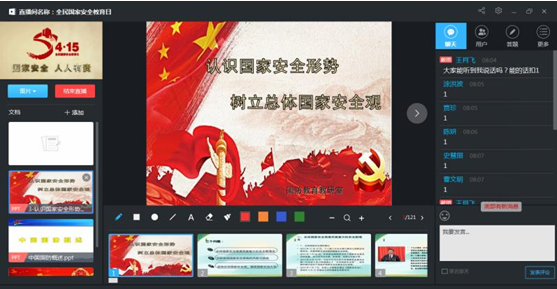 教学活动围绕国家安全概念和基本内容、当前我国国家安全面临的风险与挑战、危害国家安全的行为、疫情危机对我国国家安全和世界格局的影响、如何坚持总体国家安全观等方面展开,老师们通过学习通同步课堂、钉钉直播课堂等方式对公司员工进行线上专题教学,通过主题讨论与员工进行线上互动和答疑,帮助员工认识总体国家安全观,树立国家安全意识。