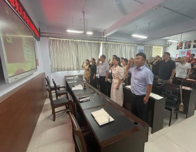 最后全体党员重温入党誓词,各支部组织委员收缴了党费。
