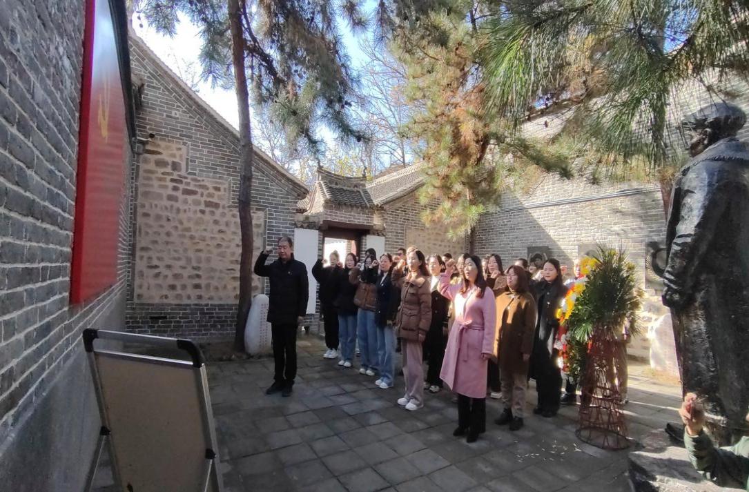 在刘少奇旧居,党员聆听、回顾刘少奇等革命前辈在渑池历经艰险、前赴后继,为中国革命不懈奋斗的艰难历程和英雄事迹,真切感受红色革命教育的精髓。参观结束后,全体党员齐唱红色歌曲《没有共产党就没有新中国》,向刘少奇塑像敬献花篮并鞠躬致敬。在庄严的党旗下,全体党员重温入党誓词,在铮铮誓言中回望初心使命。
